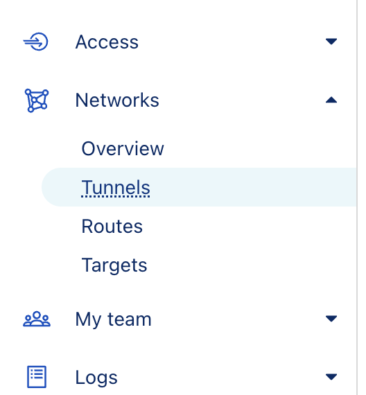 - Navigate to Networks > Tunnels in the Zero Trust dashboard.
