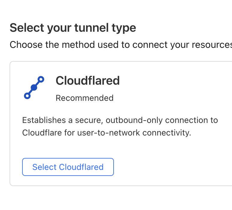 - Click Create a tunnel and select Cloudflared as the tunnel type