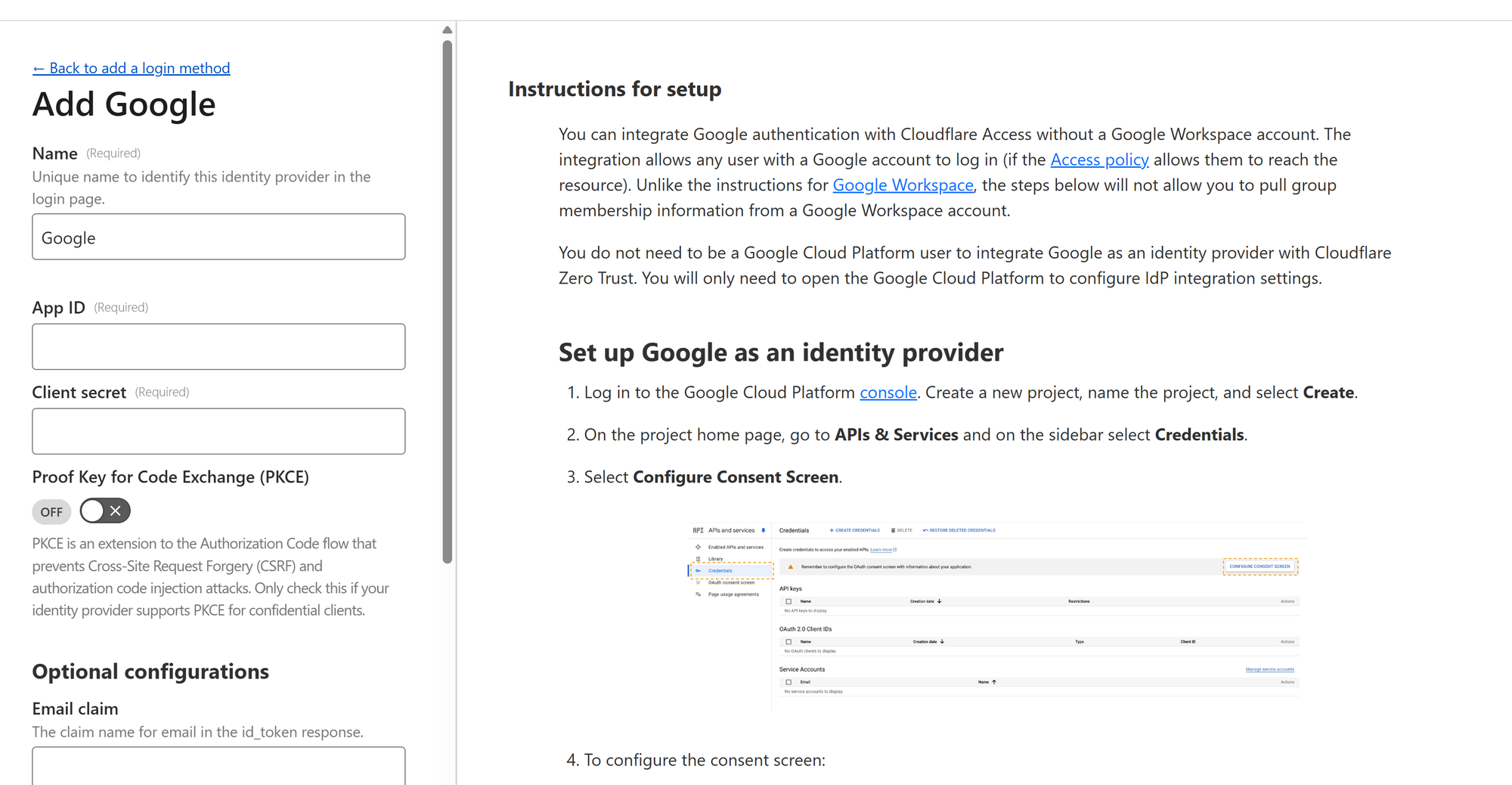 b. Add Google as a Login Method